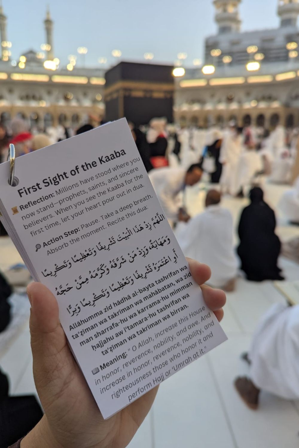 Each card features authentic duas in Arabic, along with transliteration and translation, ensuring effortless recitation—perfect for reverts, first-time pilgrims, or anyone seeking a deeper connection.
